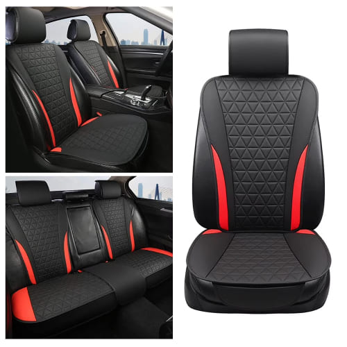 This universal full‑set offers premium waterproof PU leather protection with a bold black-and-red design that suits most vehicle models.
